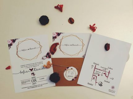 Ao abrir o convite, os convidados são surpreendidos com um interior cuidadosamente projetado. O texto do convite é impresso em uma fonte clara e legível, proporcionando uma leitura fácil e agradável. Além disso, há espaço para personalizar as informações do casamento, como a data, o horário e o local da cerimônia e da recepção.
