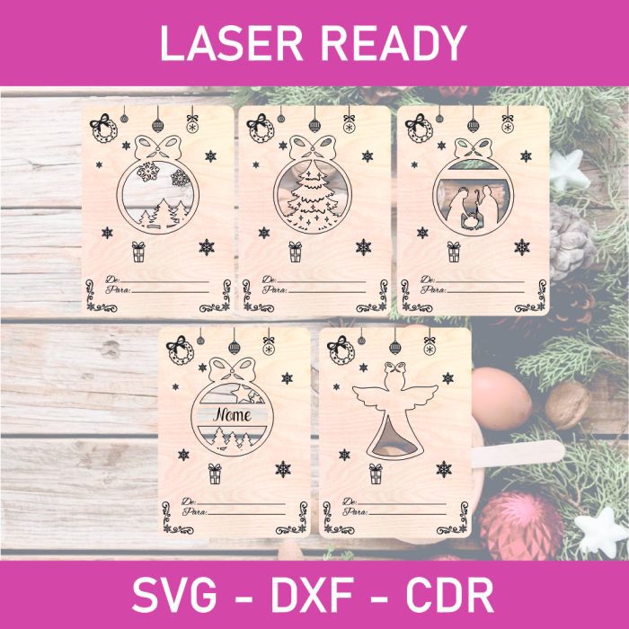 5 Christmas Cards, ready to cut in 3 different file extensions.