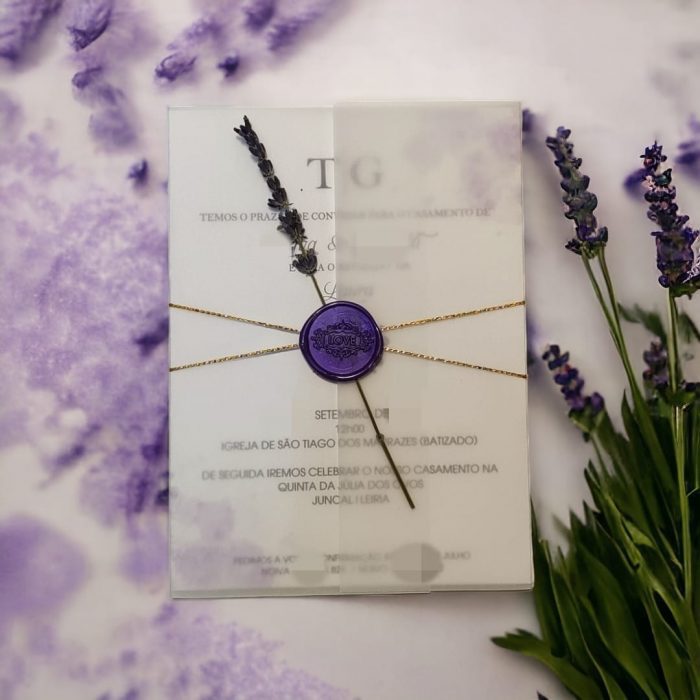 Para completar o conjunto, o convite de casamento Maravilha Lilás vem acompanhado de um envelope de alta qualidade, que combina perfeitamente com o design do convite. O envelope pode ser personalizado com o nome dos convidados e endereço, garantindo que cada convite seja entregue de forma elegante e especial.